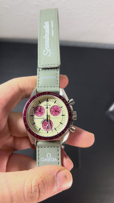 Basado en el Omega x Swatch Mission to Pluto, en HW presentamos su mejor versión, reemplazando la caja original de plástico por una caja y correa en acero inoxidable 316l y cristal de Zafiro.