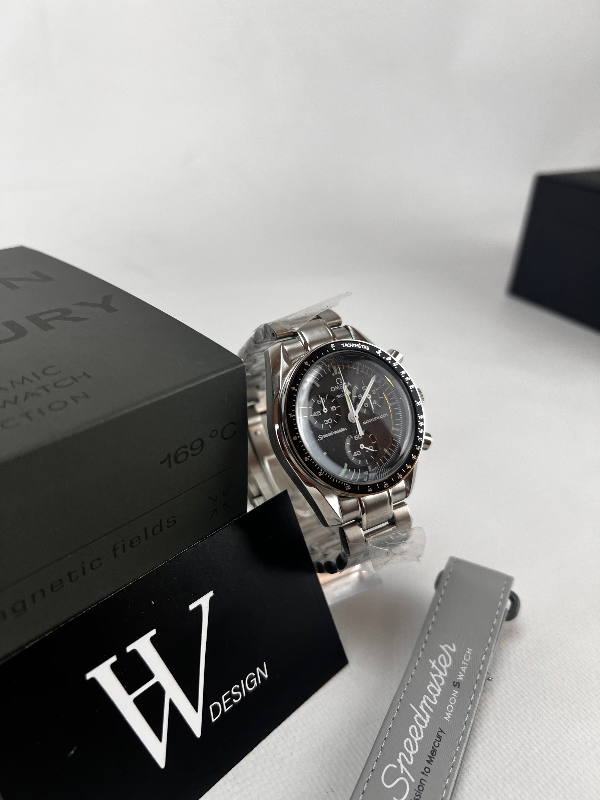 Basado en el Omega x Swatch Mission to Mercury, en HW presentamos su mejor versión, reemplazando la caja original de plástico por una caja y correa en acero inoxidable 316l y cristal de Zafiro.
