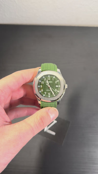 Inspirado en el icónico diseño Aquanaut y equipado con el famoso movimiento automático Seiko NH35 , presentamos el HW Design Aquanaut Green . Este reloj de 41 mm de alta calidad combina a la perfección lujo, precisión y accesibilidad.